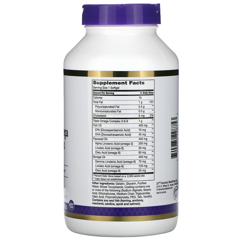 21st Century Triple Omega Complex 3-6-9 180 Enteric Coated Softgels chính hãng
