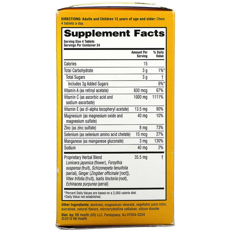 Thành phần có trong AirBorne Original Immune Support Supplement Very Berry 96 Chewable Tablets