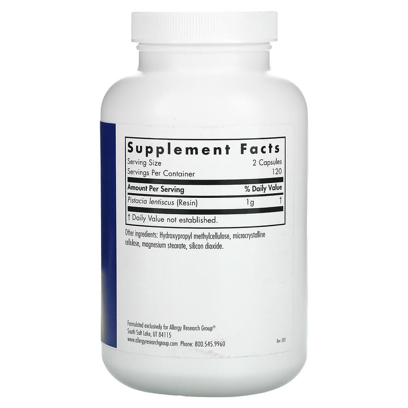 Thực phẩm chức năng Allergy Research Group Mastica Chios Gum Mastic 240 Vegetarian Capsules chính hãng nhập khẩu từ Mỹ, Mã vạch 713947773707, Quy cách: 0.23 kg, 240 viên