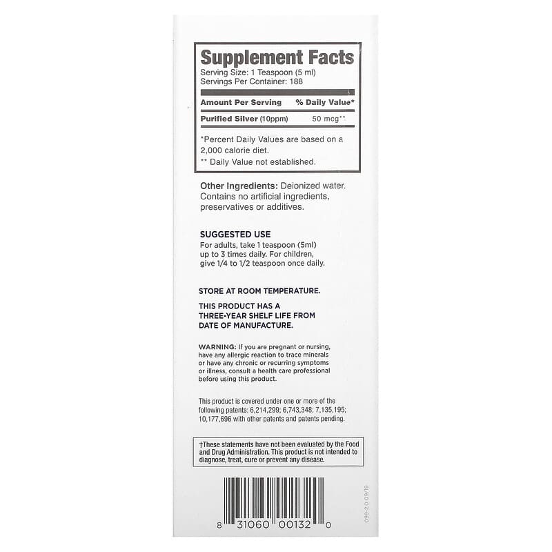 Thành phần có trong American Biotech Labs Silver Biotics Daily Immune Support Supplement with SilverSol Technology 32 fl oz (946 ml)