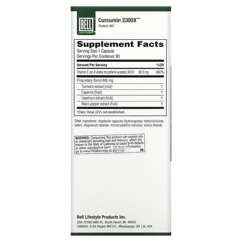 Thực phẩm chức năng Bell Lifestyle Curcumin 2000X 90 Veggie Capsules chính hãng nhập khẩu từ Mỹ, Mã vạch 771733110396, Quy cách: 0.12 kg, 90 viên