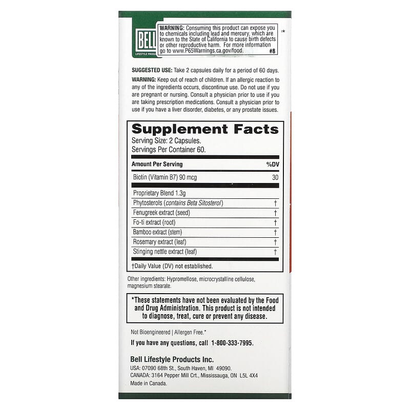 Thành phần có trong Bell Lifestyle Natural Superior Hair Formula 120 Veggie Capsules