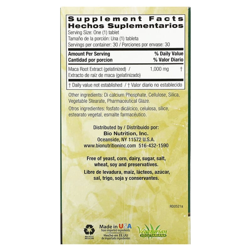 Thực phẩm chức năng Bio Nutrition Maca Max 30 Tablets chính hãng nhập khẩu từ Mỹ, Mã vạch 854936003099, Quy cách: 0.09 kg, 30 viên