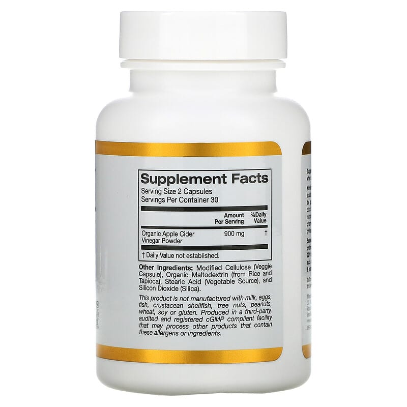 California Gold Nutrition Apple Cider Vinegar Organic Apple Cider Vinegar Powder Supports Healthy Digestion & Metabolism* Formulated to Contain: No Gluten, No GMOs, No Soy Produced in a 3rd Party Audited cGMP Registered (Certified) Facility 100% Gold Guarantee