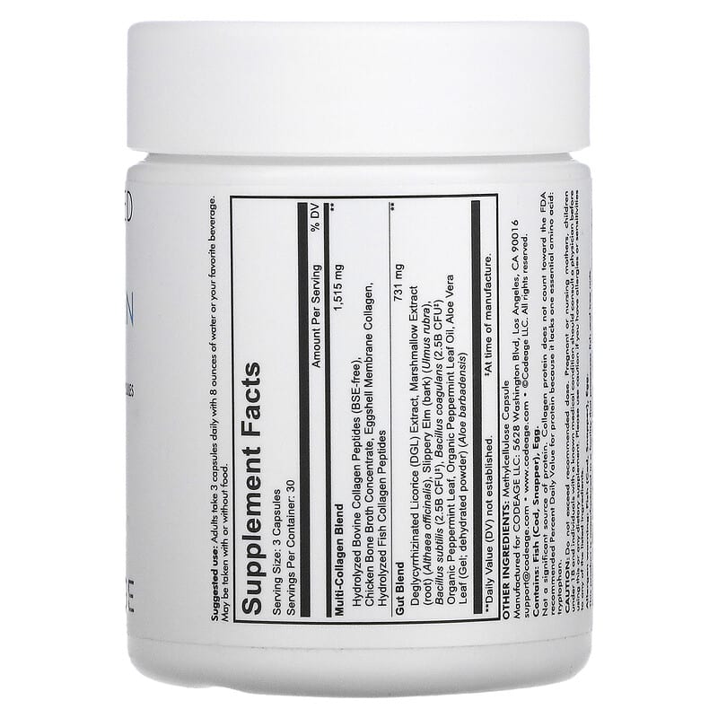 Codeage Hydrolyzed Multi Collagen + Gut Blend Type I II III V X 90 Capsules chính hãng