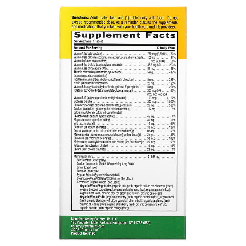 Thành phần có trong Country Life Core Daily-1 Multivitamins Men 60 Tablets
