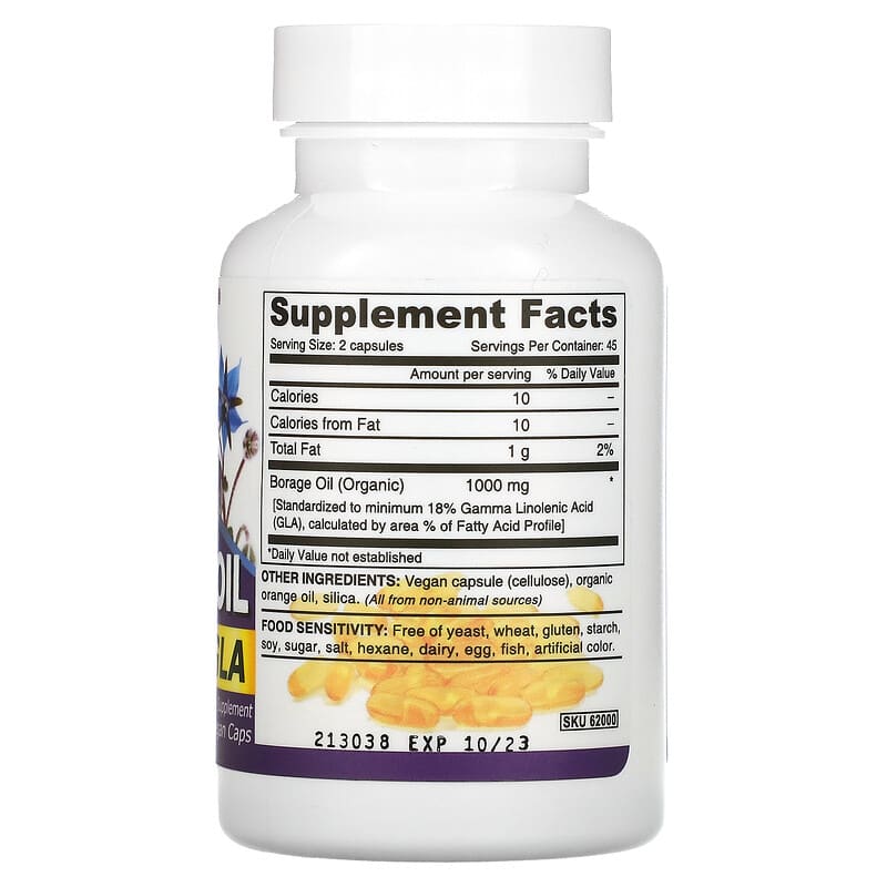 | Borage Oil (Organic) (Standardized to minimum 18% Gamma Linolenic Acid (GLA), calculated by area % of Fatty Acid Profile) |