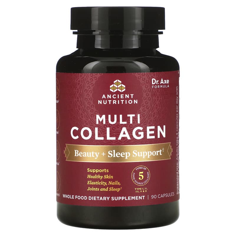 Thực phẩm chức năng Dr. Axe / Ancient Nutrition Multi Collagen Beauty + Sleep Support 90 Capsules chính hãng nhập khẩu từ Mỹ, Mã vạch 816401025180, Quy cách: 0.11 kg, 90 viên