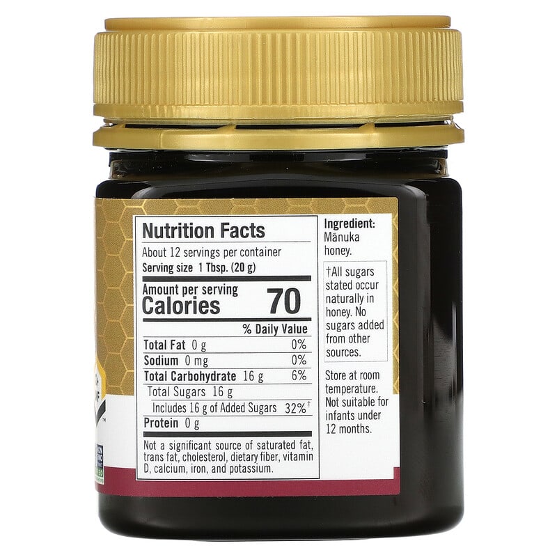 Product of New Zealand12+ UMFNon GMO Project Verified Flora Mānuka Honey is produced by a sustainable, eco-friendly, 100% Maori-owned honey operation in New Zealand. The honey is sourced from several North Island locations and is licensed and certified under the UMF™ grading system as well as tested and rated for its MGO (methylglyoxal) content. Additionally, every jar is 100% traceable, all the way back to the source. Just scan the code on the label to learn where your honey was made, its lab test results, and its UMF™ rating. Guaranteed Purity & Quality:UMF™-certified and MGO-graded100% traceable – scan the NFC tag on the label to access batch, region, lab test, and UMF™ certification infoSourced from a sustainable, 100% Maori-owned honey operation (winner of several prestigious farming and eco-friendly awards)Bottled in 100% recyclable, food grade BPA-free PET jarsUMF™ License No. 2960Non-GMO + Sustainable + UnpasteurizedAbout UMF™Flora Mānuka Honey is licensed by the Unique Mānuka Factor Honey Association™ in New Zealand. This is an internationally recognized, third-party verification system that ensures the identity, potency, and quality of Mānuka honey. UMF™ graded products have been tested for three signature compounds that are all needed to ensure the honey is real Mānuka honey made from Leptospermum scoparium flowers: Leptosperin, DHA (Dihydroxyacetone) and Methylglyoxal (MGO). The higher the UMF™ grading number on the product, the higher the concentration of signature compounds found in Mānuka honey.