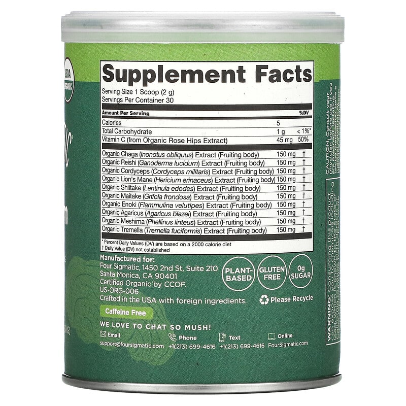 USDA OrganicDefendWith Immune Supporting Mushrooms Dietary Supplement 30 ServingsPlant-Based Gluten Free0 g SugarCertified Organic by CCOFRigorously Lab-Tested Caffeine Free1500 mg Mushrooms Per ServingFlavor: Earthy + SmoothYour Daily Dose of SuperheroWhen you can’t pick just one, call on all. The perfect blend of functional mushrooms is here to swoop in and fortify your overall wellbeing.