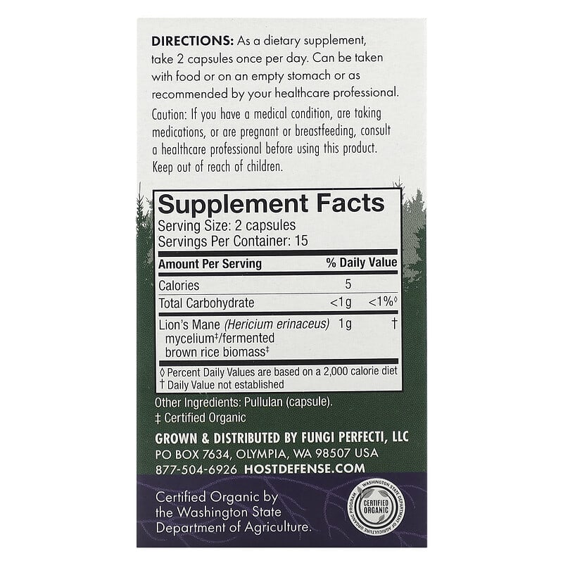 Made with Organic Mushroom MyceliumNon GMOGluten Free & Vegan Dietary Supplement Certified Organic by the Washington State Department of Agriculture#1 Best-Selling Mushroom Brand In The U. S. Bee FriendlyPowered by Mushroom MyceliumFungi Perfecti® – makers of Host Defense Mushrooms – was founded by renowned mycologist Paul Stamets to build a bridge between people and fungi. We specialize in mycelium-based supplements for immune support and whole-body wellness. Sustainably grown in the USA, our mushroom mycelium is cultured on organic brown rice. Host Defense formulations are based on scientifically validated data to ensure quality and safety. LION’S MANE (Hericium erinaceus) MEMORY & NERVE SUPPORTKnown as “The Smart Mushroom” Lion’s Mane is ideal for anyone seeking cognition, memory, and mood support. Long-renowned for supporting the nervous system, studies also show that Lion’s Mane can increase Nerve Growth Factor. Promotes mental clarity, focus, and memory. Supports a balanced mood. Promotes nervous system health. Supports a balanced immune response. Source: SPINSscan Natural / Natural Products Supermarkets > $2MM / Total US – Natural Channel / Mushrooms Ingredient Report / 52 Wks Ending 12/26/2021