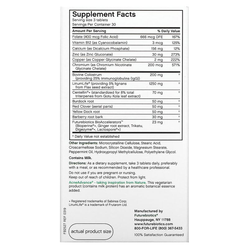 Futurebiotics Acne Advance with Colostrum 90 Vegetarian Tablets chính hãng