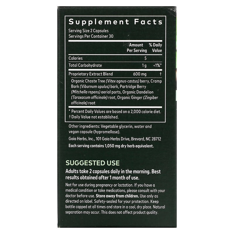 Traditional Herbs for Healthy Reproductive FunctionHelps Maintain Healthy Cycles During PreconceptionHerbal SupplementIntegrity – Purity – PotencyVeganGluten-FreeSoy-FreeCertified B CorporationConnecting Plants & People™ since 1987Gaia Herbs delivers unprecedented traceability by screening every product. Purity – Keep it CleanAll products are screened for pesticides, microbes & heavy metals. Potency – Keep it StrongConcentrated plant extracts are delivered in our patented Phyto-Caps® technology.