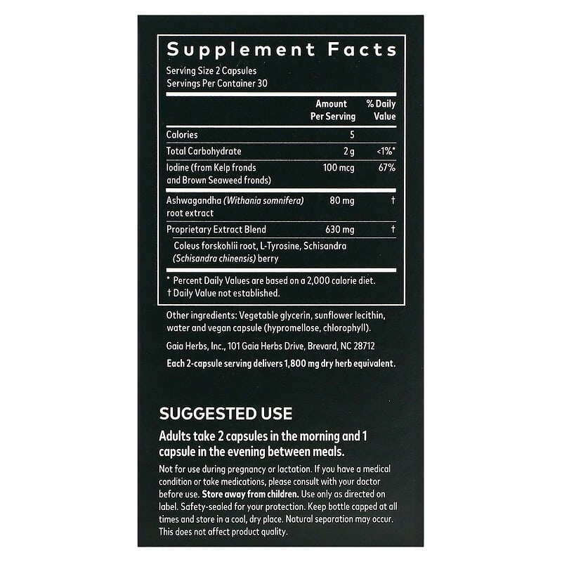 Thành phần có trong Gaia Herbs Thyroid Support 60 Vegan Liquid Phyto-Caps