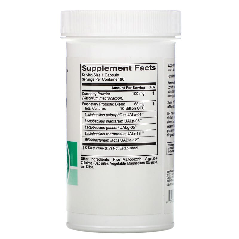 HealthyBIOM™ Women’s Cranberry Probiotics5-Strain Probiotic Blend Plus Cranberry10 Billion CFUsUrinary Tract, Digestive, and Immune Health*Suitable for Vegetarians and VegansFormulated without Gluten, GMOs, or SoyProduced in a Registered cGMP Compliant Facility