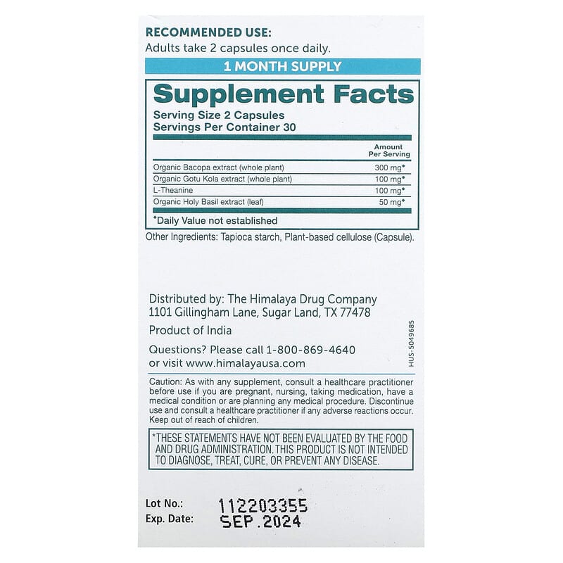 Sản phẩm Himalaya Hello Calm Mind 60 Vegetarian Capsules không phải là thuốc và không có tác dung thay thế thuốc chữa bệnh. Bạn nên hỏi ý kiến của Bác sĩ hoặc Chuyên gia dinh dưỡng khi sử dụng.
