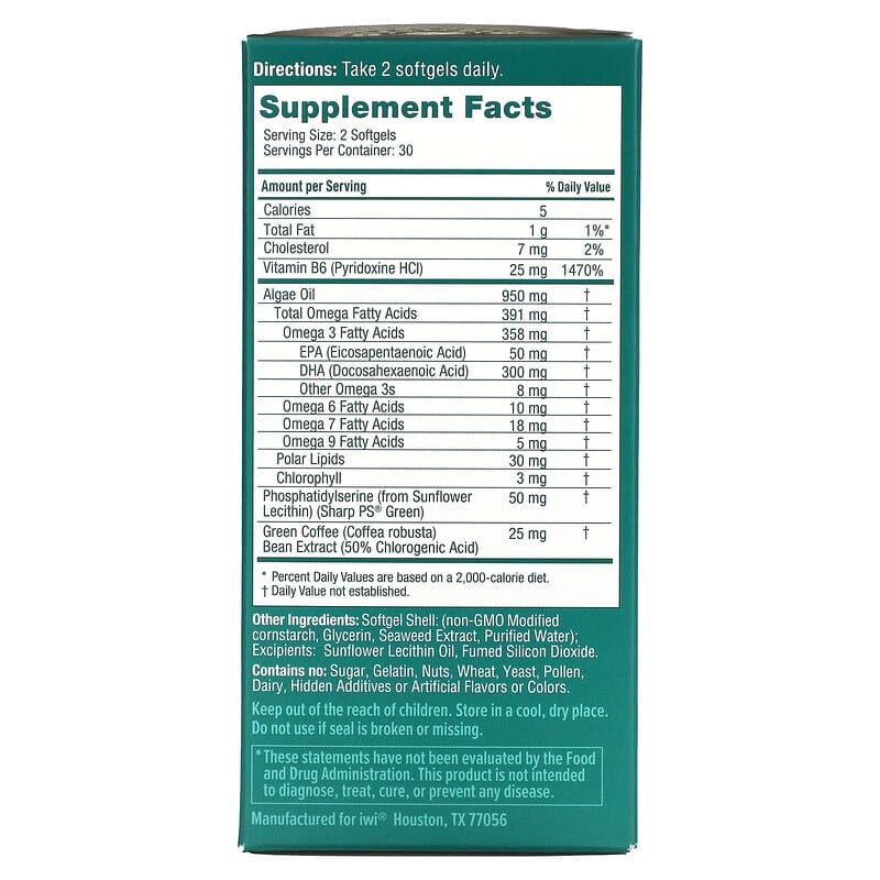 Thực phẩm chức năng iWi Brain Omega-3 + PS and Green Coffee Bean 60 Softgels chính hãng nhập khẩu từ Mỹ, Mã vạch 818353020411, Quy cách: 0.11 kg, 60 viên