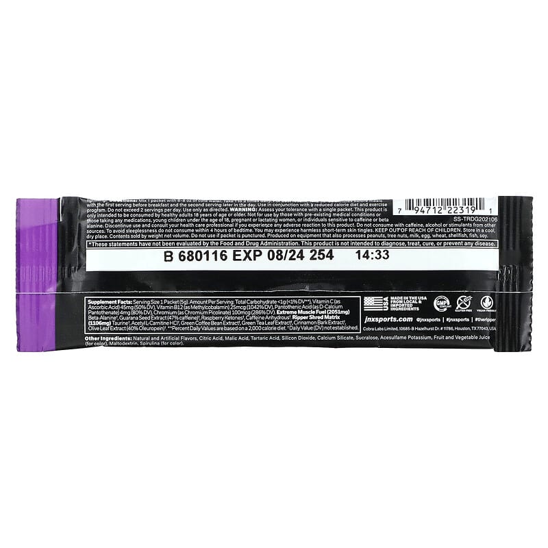 Thực phẩm chức năng JNX Sports The Ripper Fat Burner Dark Grape 1 Stick 0.18 oz (5 g) chính hãng nhập khẩu từ Mỹ, Mã vạch 794712223191, Quy cách: 0.01 kg,