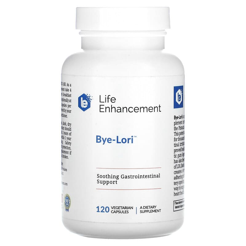 Soothing Gastrointestinal SupportA Dietary SupplementGMP QualityBye-Lori is a potent and effective dietary supplement containing pure mastic gum from the Pistacia lentiscus tree found in Greece. This potent and effective resin has been used for thousands of years to support gastrointestinal irritations, microbial balance and improved healing responses. In addition to mastic gum legendary gastrointestinal effects, it has also been shown to reduce the oxidation of LDL (bad cholesterol). Oxidation of the LDL creates a very sticky molecule that is prone to adhering to the artery wall, narrowing the artery opening. Mastic gum is a safe and natural way to support both your GI health and your heart health.