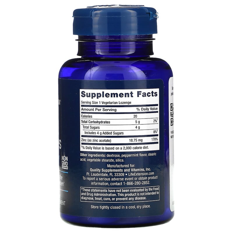 Life Extension Enhanced Zinc Lozenges Peppermint 30 Vegetarian Lozenges chính hãng