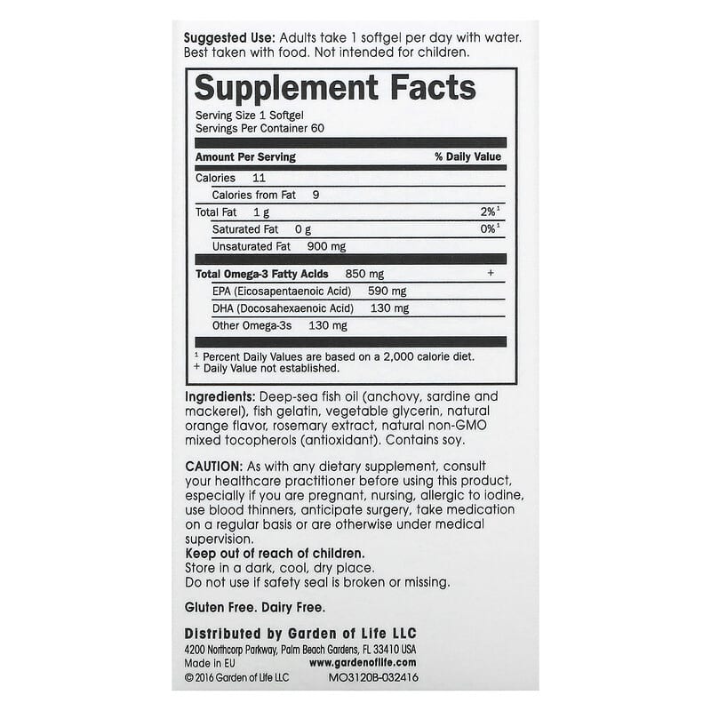 Four Month SupplyDaily MaintenanceHeart & Brain Health850 mg Omega-3sOnce DailyNo Fishy Aftertaste Dietary Supplement Gluten FreeDairy FreeMinami Omega-3 is a premium supplement that delivers 850 mg of Omega-3 nutrition in one convenient softgel with a clean, orange flavor and no fishy aftertaste. Advanced Omega-3 research suggests a high concentration of EPA, along with DHA, can support mood, cognitive function and cardiovascular health. Super Concentrated Omega-3 Minami offers one of the highest concentrated Omega-3 fish oils on the market, which means more Omega-3 nutrition, no fillers or saturated fats and fewer softgels to take. Quality You Can TrustPurity – Minami utilizes a three step unique purification process, employing extensive quality controls to produce ultra pure EPA & DHA rich fish oil. Quality Testing – Minami oils go through rigorous third-party testing and have remarkably low levels of oxidation as well as undetectable levels of dioxins, pesticides and heavy metals like mercury. SustainabilityMinami obtains fish from sustainably managed waters and is the only fish oil in the world to receive EMAS (Eco-Management and Audit Scheme) status – a very stringent European standard. Minami fish oils are processed in unique energy-efficient facilities, that recycle organic waste materials to convert them into energy to power the factory community.