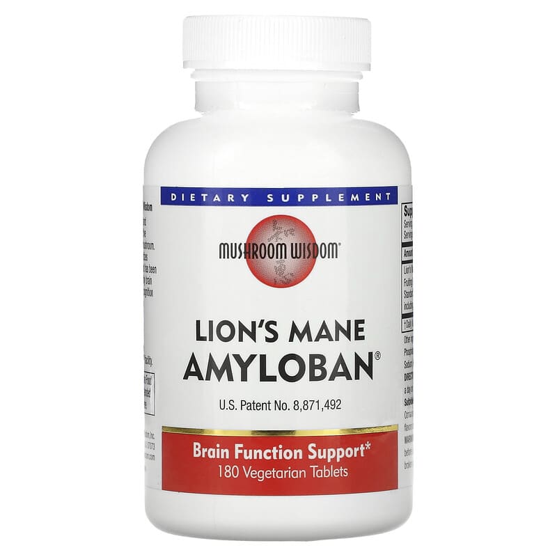 Dietary Supplement Brain Function SupportPatented Extraction ProcessMushroom Wisdom Products Are Manufactured In a Certified cGMP FacilitySuitable For VegetariansScience Complementing Ancient WisdomAmyloban® is made from a unique and innovative extract concentrating active compounds from the Lion’s Mane mushroom. This extract, Amycenone®, standardizes amyloban including hericenones and has been shown by research to support healthy brain function while maintaining healthy cognition and sleep quality.