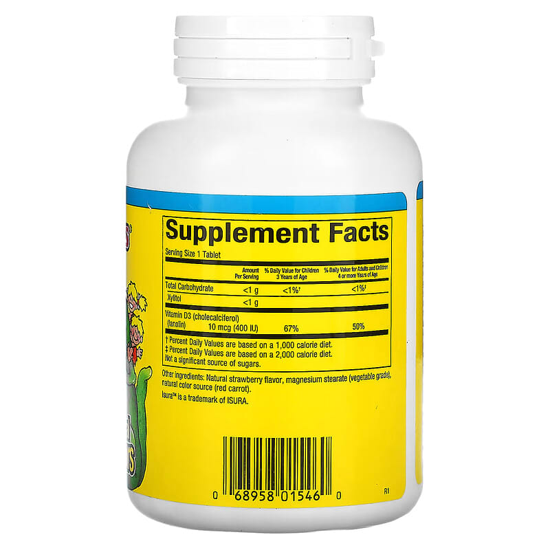 Dietary Supplement Sugar & Gluten FreeNaturally Sourced Flavors & ColorsSuitable for VegetariansPurity & Potency GuaranteedBig Friends Chewable Vitamin D3 is a convenient 10 mcg (400 IU) tablet in a delicious berry bunch flavor. A factor in maintenance of good health. Helps in the development and maintenance of bones and teeth. Helps in the absorption and use of calcium and phosphorus. Helps to prevent vitamin D deficiency. Isura: