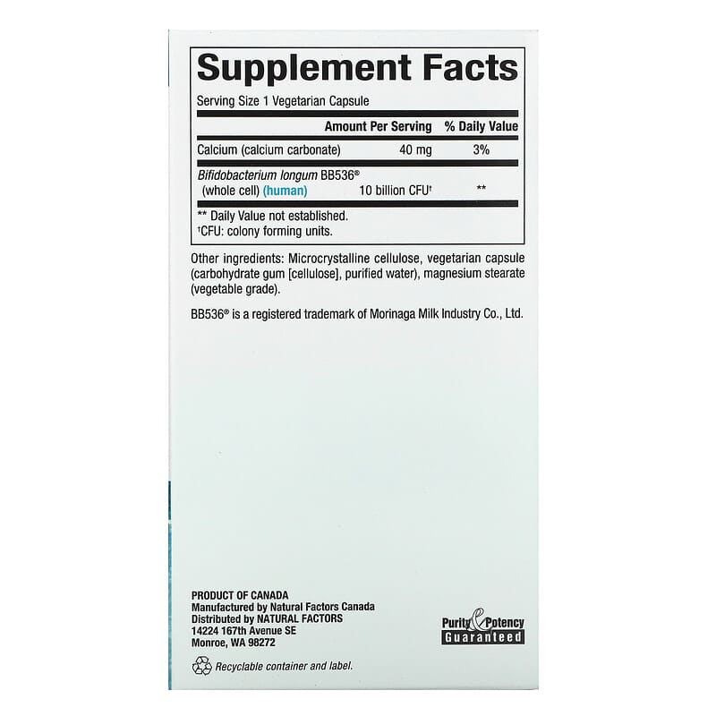Thành phần có trong Natural Factors Travel Biotic BB536 10 Billion 60 Vegetarian Capsules
