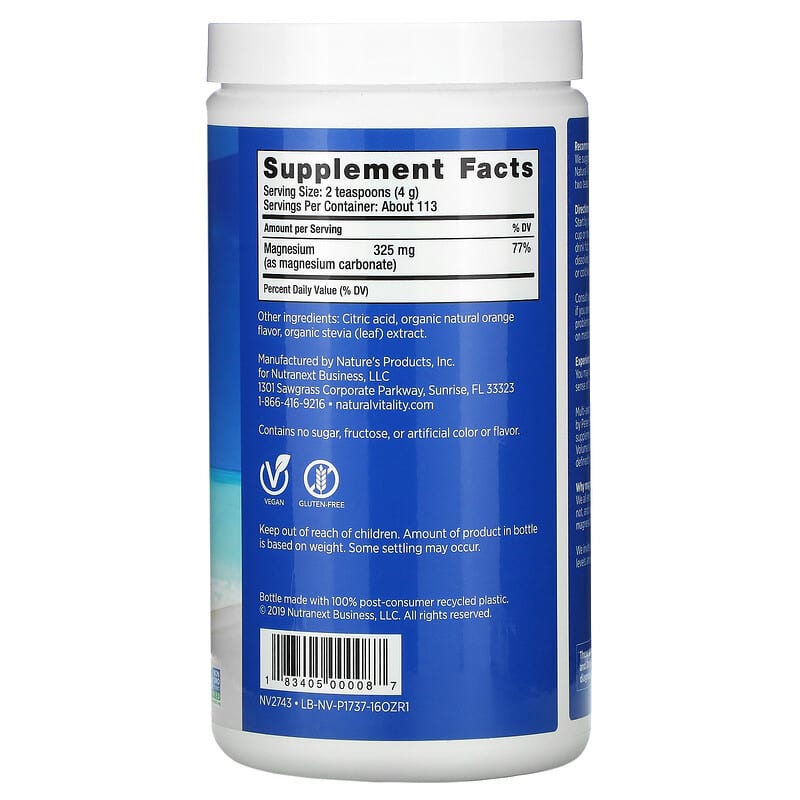 Recommended Use for Adults: We suggest starting out with half a teaspoon (1 g) of Natural Vitality CALM™ powder, gradually increasing to two teaspoons (4 g) daily. Directions: Start by placing your desired amount of powder into a cup or mug, add 2-3 ounces of warm water and let your drink fizz. Stir the drink until the powder is completely dissolved, then fill the remainder of the cup with warm or cold water. Now experience CALM.