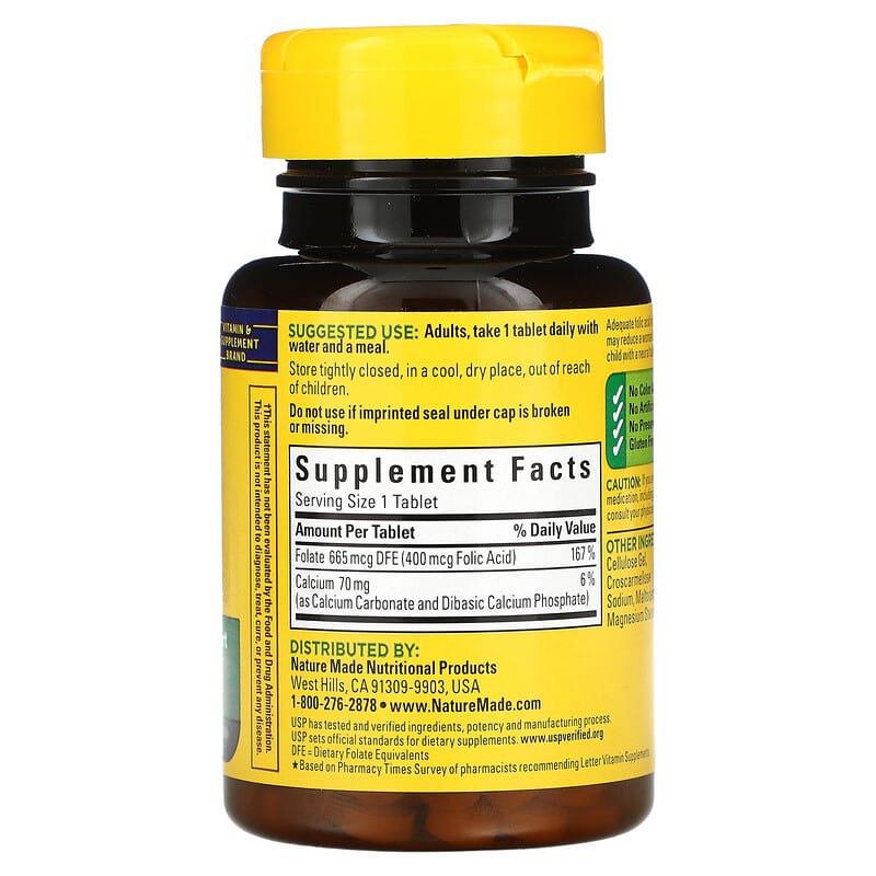 #1 Pharmacist Recommended Vitamin & Supplement Brand* Dietary Supplement USP® Verified400 mcg (665 mcg DFE)Important B Vitamin for Women of Childbearing AgeHelps Support Nervous System FunctionNo Color AddedNo Artificial FlavorsNo PreservativesGluten FreeAdequate folic acid in healthful diets may reduce a woman’s risk of having a child with a neural tube defect. USP has tested and verified ingredients, potency and manufacturing process. USP sets official standards for Dietary Supplement s. DFE = Dietary Folate Equivalents*Based on Pharmacy Times Survey of pharmacists recommending Letter Vitamin Supplements.