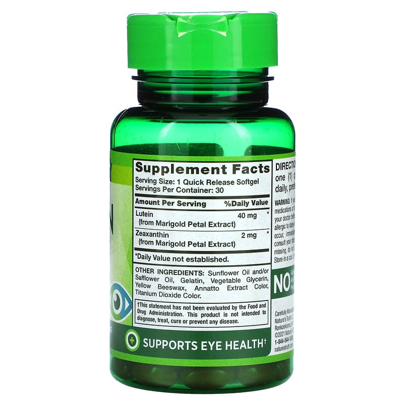 Sản phẩm Nature’s Truth Lutein Plus Zeaxanthin 40 mg 30 Quick Release Softgels không phải là thuốc và không có tác dung thay thế thuốc chữa bệnh. Bạn nên hỏi ý kiến của Bác sĩ hoặc Chuyên gia dinh dưỡng khi sử dụng.