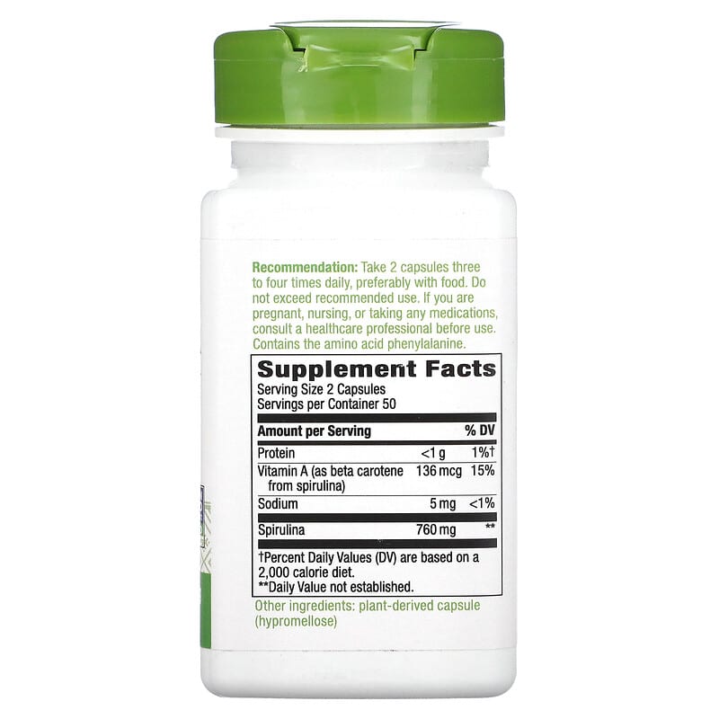 Thực phẩm chức năng Nature's Way Spirulina Micro-Algae 380 mg 100 Vegan Capsules chính hãng nhập khẩu từ Mỹ, Mã vạch 033674172001, Quy cách: 0.07 kg, 100 viên