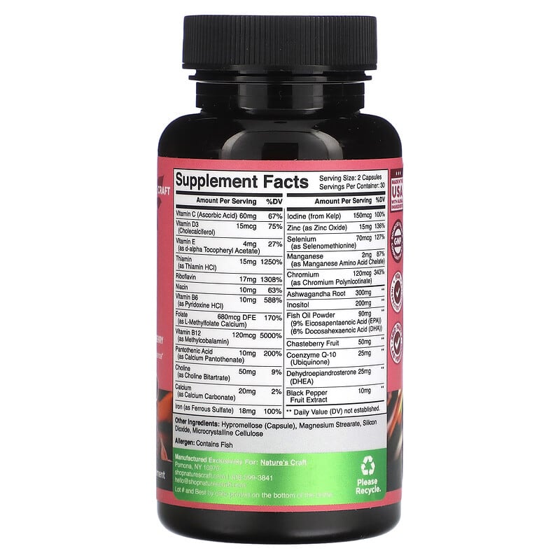 Thực phẩm chức năng Natures Craft Women's Wellness Fertility Booster with Folate CoQ10 & Chasteberry 60 Capsules chính hãng nhập khẩu từ Mỹ, Mã vạch 850034386102, Quy cách: 0.08 kg, 60 viên