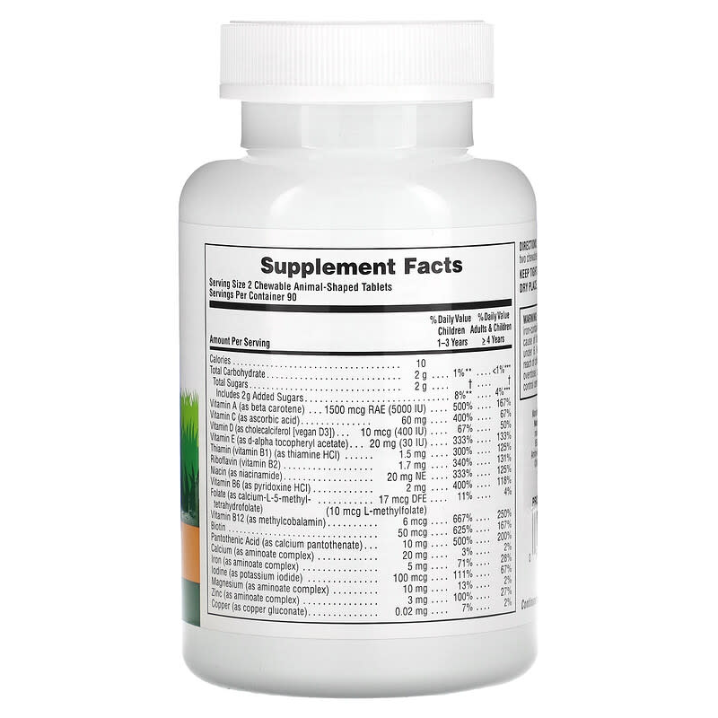| Serving Size: 2 Chewable Animal-Shaped Tablets | |||