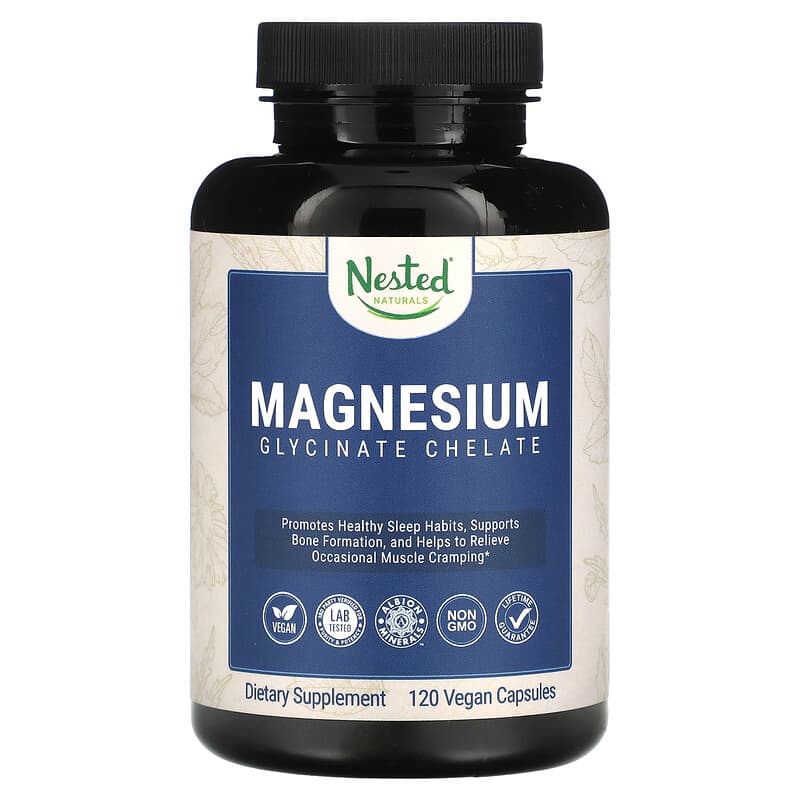 VeganLab Tested – 3rd Party Verified For Purity & PotencyAlbion MineralsNon GMO Dietary Supplement Gluten FreePromotes Healthy Sleep Habits, Supports Bone Formation, and Helps to Relieve Occasional Muscle CrampingOur Mission: To better your health & wellness with clean, ingredients backed by evidence-based science. Third Party Tested: Every batch is tested to ensure you get all the good stuff. Radically Transparent: You deserve to know everything that goes into your body. That’s why we include every single ingredient on the label. Nested Naturals 1% for Health and Happiness. Made with love using an exclusive Albion™ buffered chelate technology. Enjoy maximum bioavailability and magnesium absorption without the adverse laxative effect of other forms. Supports bone formation by maintaining the regulation of calcium, vitamin D, copper, and zinc in the body. Helps to relieve occasional tightness and muscle cramping caused by everyday exercise and fitness. Boosts energy by supporting chemical reactions that metabolize carbohydrates and fats. Promotes healthy sleep habits by supporting a relaxed mind and body.