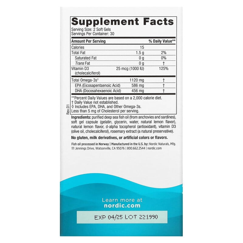 Thành phần có trong Nordic Naturals Ultimate Omega 2X with Vitamin D3 Lemon 60 Mini Soft Gels