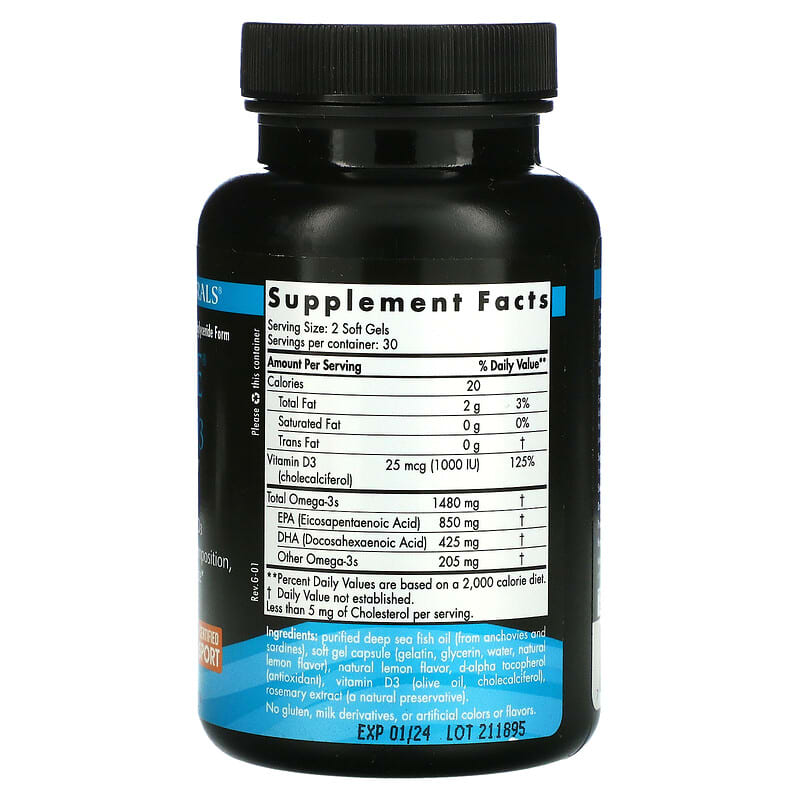 Superior Absorption!Superior Triglyceride Form1480 mg Omega-3 + 1000 I. U. D3Non GMO VerifiedThird-Party Purity TestedNSF Certified for Sport Dietary Supplement Molecularly DistilledGuaranteed PurityWild CaughtPureNo Fishy AftertasteFriend of the Sea CertifiedSupports healthy muscle activity, body composition, joint mobility, focus, and endurance. Providing highly concentrated omega-3 fish oil with natural vitamin D3 in on convenient formula. Ultimate Omega® D3 Sport supports a healthy heart, is free of athletic banned substances, and is certified for sport by the NSF. It offers all the benefits of omega-3 EPA and DHA, without the fishy repeat. Every batch of Nordic Natural fish oil is tested by a third part certified lab for environmental toxins, including heavy metals. All fish oils are in the triglyceride form and surpass the strictest international standards for purity and freshness.