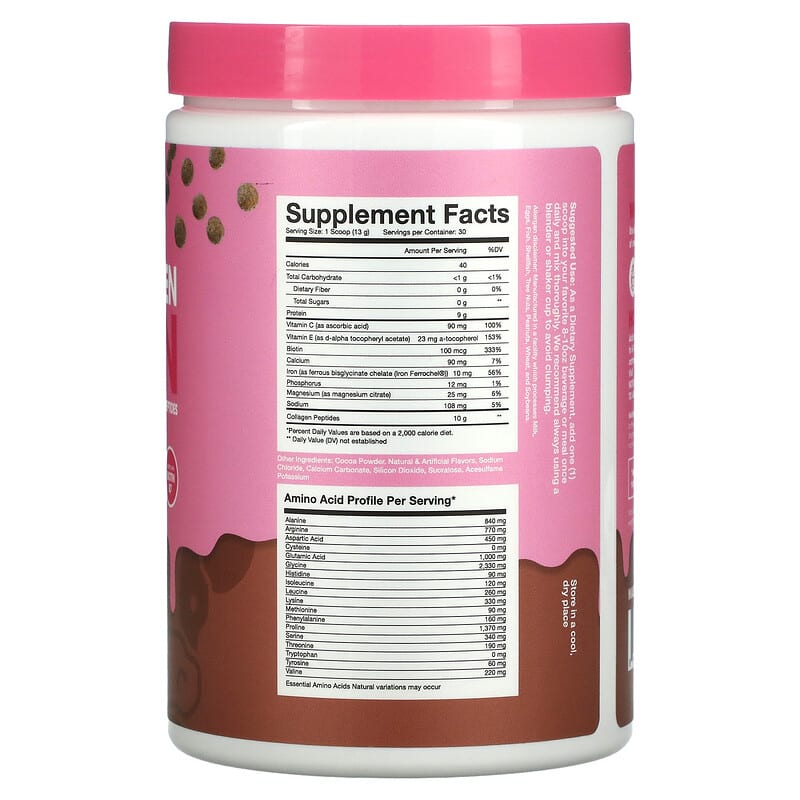The Obvious Choice0 g Sugar40 Calories90 mg Vitamin C – 100% DVHydrolyzed Grass-Fed Bovine Multi-Collagen PeptidesSupport for Youthful Hair, Skin, & NailsMade with Non GMO Ingredients10 g Collagen Per ServFortified with Biotin B7 Dietary Supplement Just Add Milk or CoffeeType I, IIIGluten FreeDairy FreeWhy Use Obvi Collagen Protein? Use daily to beautify hair, skin, nails, and to support a feeling of overall health and well-being.