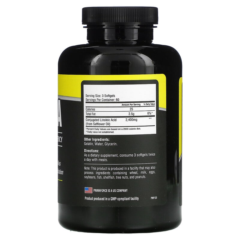 Thực phẩm chức năng Primaforce Max CLA 800 mg 180 Softgels chính hãng nhập khẩu từ Mỹ, Mã vạch 811445020290, Quy cách: 0.29 kg, 180 viên