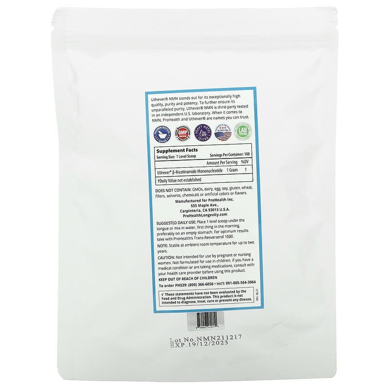 Thực phẩm chức năng ProHealth Longevity NMN Pro Pure NMN Powder 100 g chính hãng nhập khẩu từ Mỹ, Mã vạch 850023410719, Quy cách: 0.13 kg, 100 g