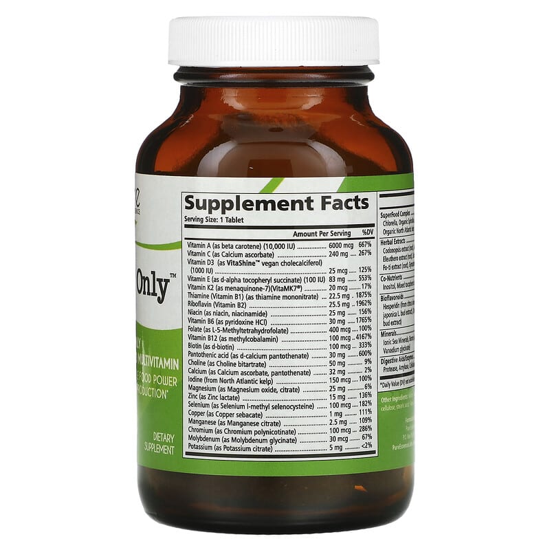 Non GMOVeganGluten FreeOrganic Ingredients100% Purity & Potency Guarantee Dietary Supplement One-Daily Whole Food Based Multivitamin