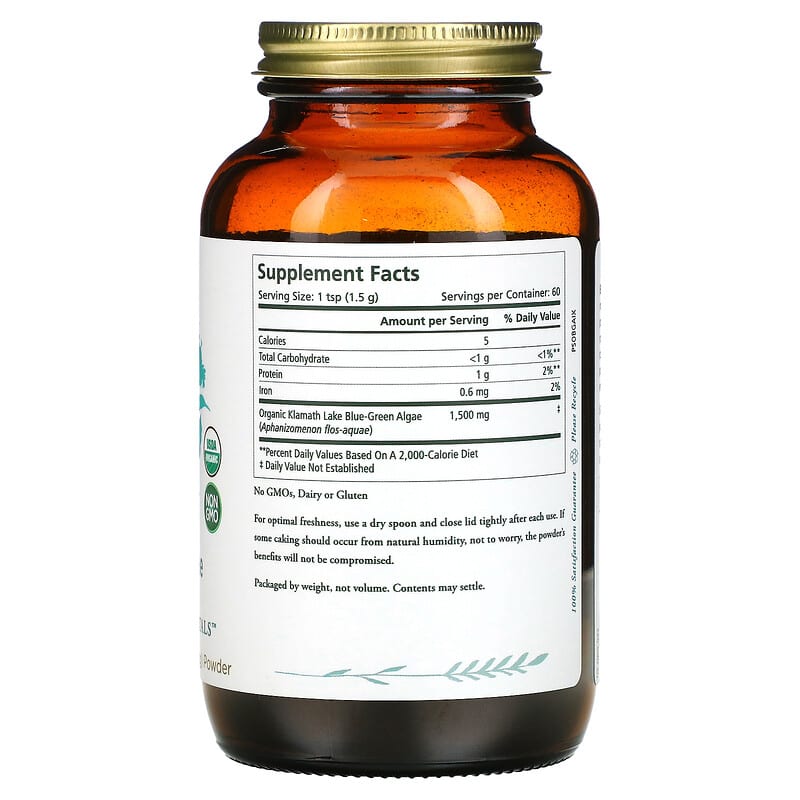 Organic Pure Klamath Crystals™USDA Organic Non GMOs, Dairy or Gluten Dietary Supplement Certified Organic by Oregon TilthCertified KosherCertified B CorporationEnergy Clarity BoostBlue-Green Algae is one of nature’s most cleansing, nourishing, and chlorophyll-rich superfoods. The unique, pristine growing environment of Upper Klamath Lake where our algae grows ensures unparalleled purity and mineral content. Cold-dried to perfection and third party tested for purity, our Organic Blue-Green Algae supports healthy energy, mental clarity and focus.