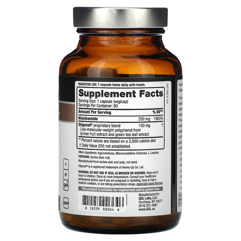 Thành phần có trong Quality of Life Labs Oligoderm with Oligonol and Niacinamide 60 VegiCaps