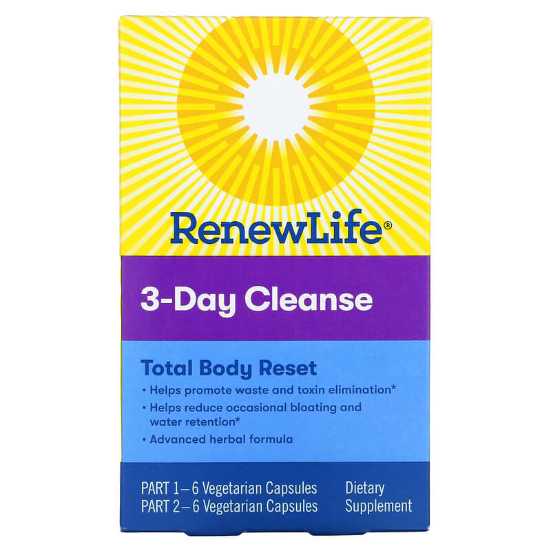 Helps Promote Waste and Toxin EliminationHelps Reduce Occasional Bloating and Water RetentionAdvance Herbal Formula Dietary Supplement Gluten FreeDairy FreeSoy FreeAt Renew Life, We’re Cleansing PioneersWith double decades of experience and innovation on our side to help you cleanse and maintain your body’s natural harmony. Feel lighter, brighter and more energized with our #1 selling cleanse. Renew Life 3-Day Cleanse -Total Body Reset is an advanced herbal formula with magnesium to help you cleanse and maintain your body’s natural harmony. It works with your body’s natural metabolism to help support healthy elimination of waste and toxins, and help reduce occasional bloating and water retention. 3-Day Cleanse also helps relieve occasional constipation and helps promote regularity to get you back to feeling like yourself again!
