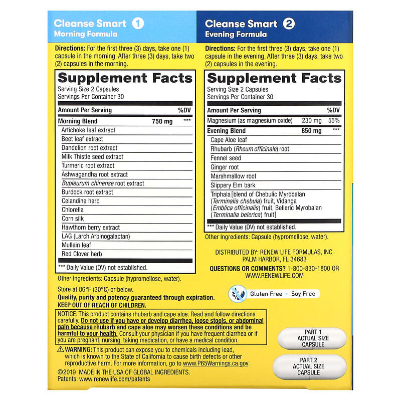 Thành phần có trong Renew Life Cleanse Smart 2 Bottles 60 Vegetarian Capsules Each