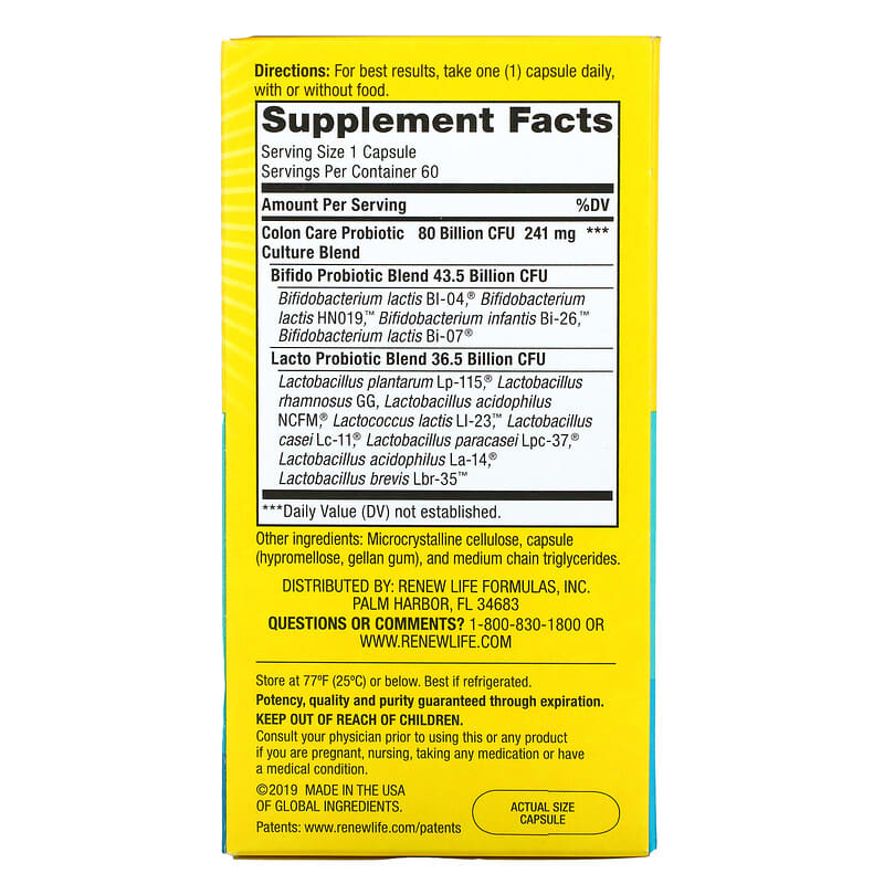 | Colon Care Probiotic Culture Blend | 80 Billion CFU 241 mg | *** |