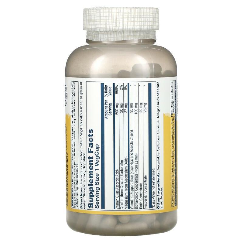 Thành phần có trong Solaray Buffered Vitamin C with Bioflavonoid Concentrate 500 mg 250 VegCaps