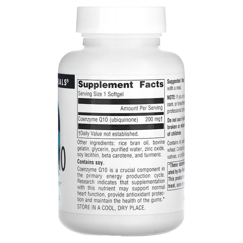 Thực phẩm chức năng Source Naturals Coenzyme Q10 200 mg 60 Softgels chính hãng nhập khẩu từ Mỹ, Mã vạch 021078015345, Quy cách: 0.09 kg,
