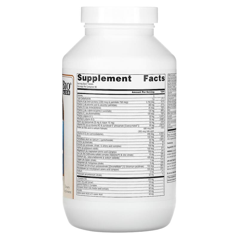 Thành phần có trong Source Naturals Life Force Multiple No Iron 180 Tablets