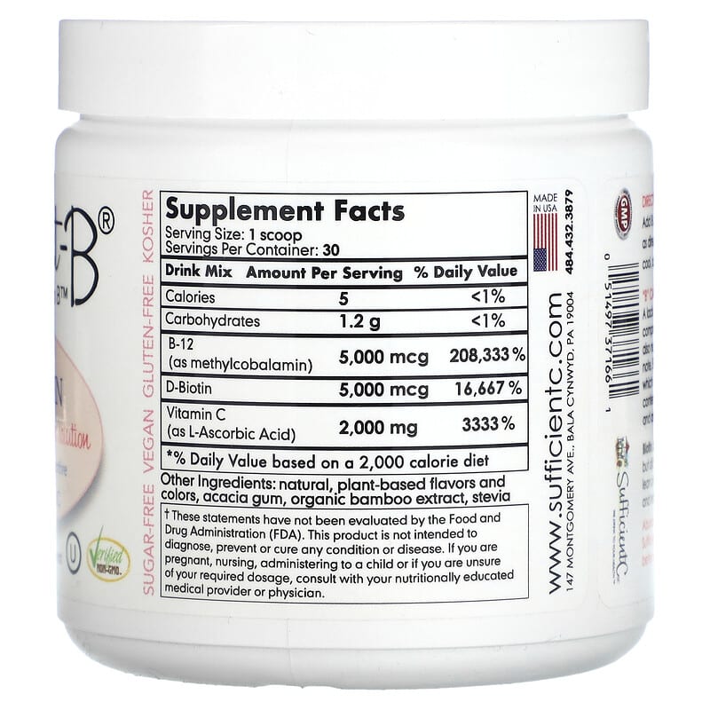 Cách sử dụng Sufficient C Abundant-B High Dosed B-12 & Biotin Drink Mix Pink Lemonade 108 g